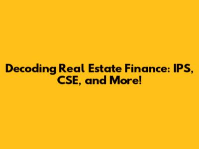 Decoding Real Estate Finance: IPS, CSE, And More!
