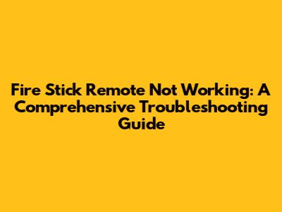 Fixing Your Fire Stick Remote: A Troubleshooting Guide