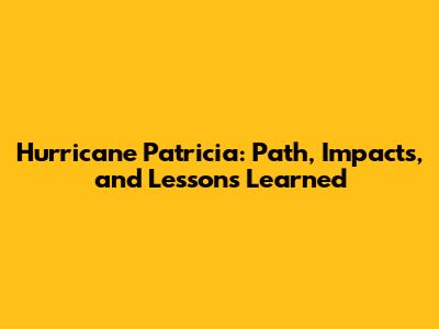 Hurricane Patricia: Path, Impacts, And Lessons Learned